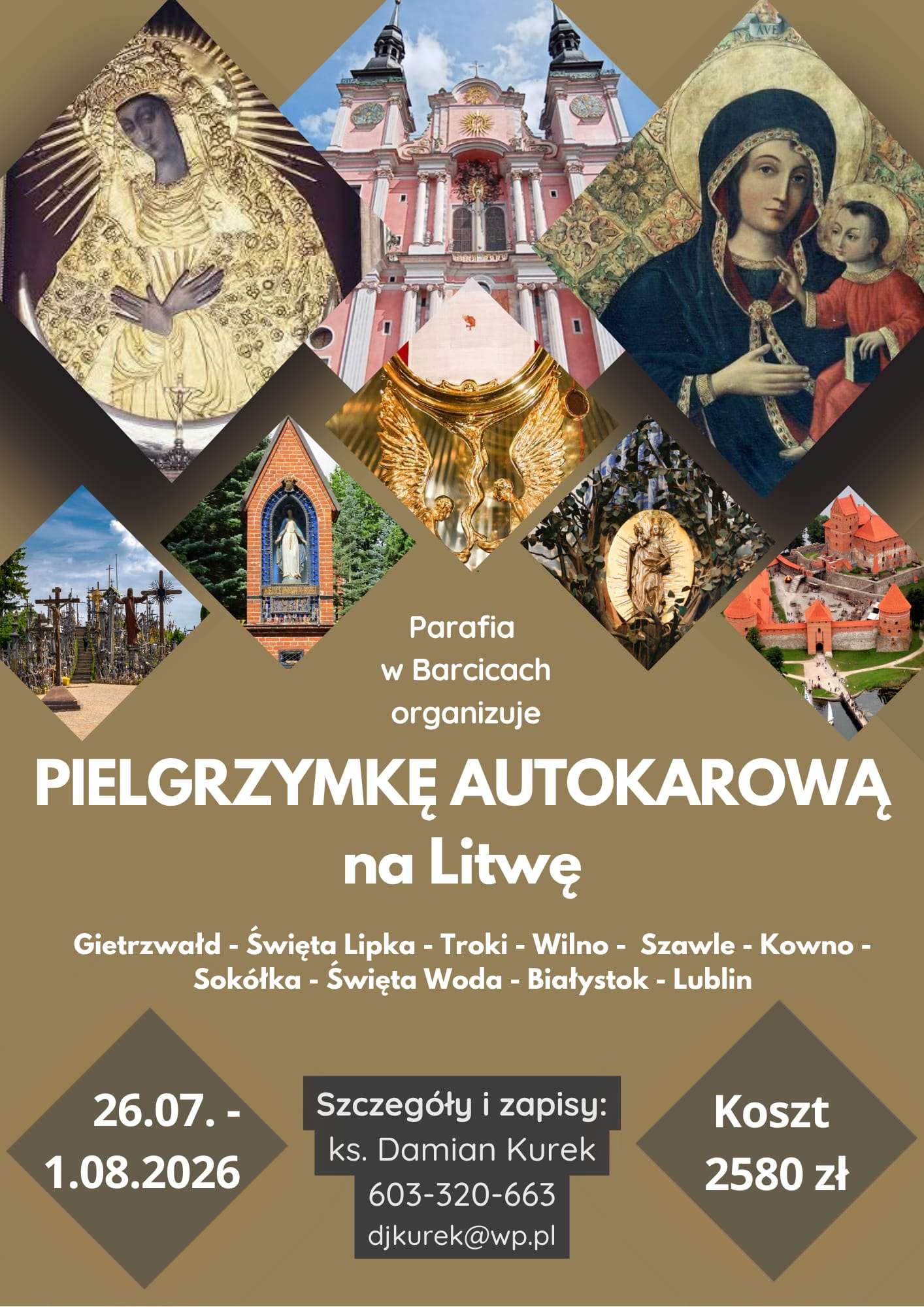 Zapraszamy na Pielgrzymkę autokarową do Gietrzwałdu, Sokółki, Świętej Lipki, Wilna, Lublina, która odbędzie się w dniach od 26.07. - 1.08. 2026 r.